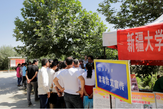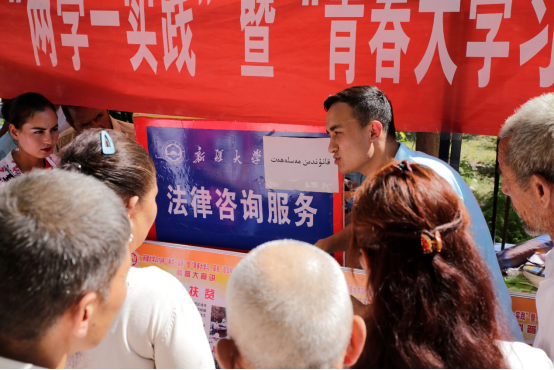 下午16点,总队到达依提木孔乡9村开展了实践活动,在高温炎热的天气下,总队队员们依旧坚守岗位,认真的开展着宣讲、表演和科普知识宣传等工作。法律咨询组的努尔依力·艾斯卡尔同学认真详细的就乡亲们关心的婚姻、遗产继承、借款、合同订立等相关问题一一的解疑答惑,赢得了广大老乡们的赞许和青睐。