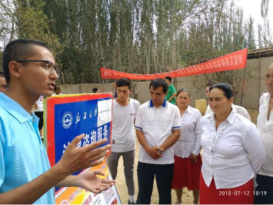7月13日,yl34511线路中心2018年“两学一实践”暨“青春大学习,服务‘总目标’,奋斗新时代”暑期社会实践科普大宣讲服务总队前往叶城县依提木孔乡7村、9村开展社会实践活动。